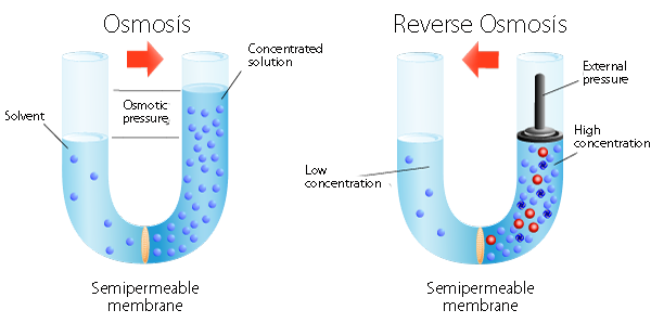 To better understand Reverse Osmosis let’s first discuss Osmosis. In both botany and chemistry, Osmosis, is the flow of one constituent of a solution through a membrane while the other constituents are blocked and unable to pass through the membrane.